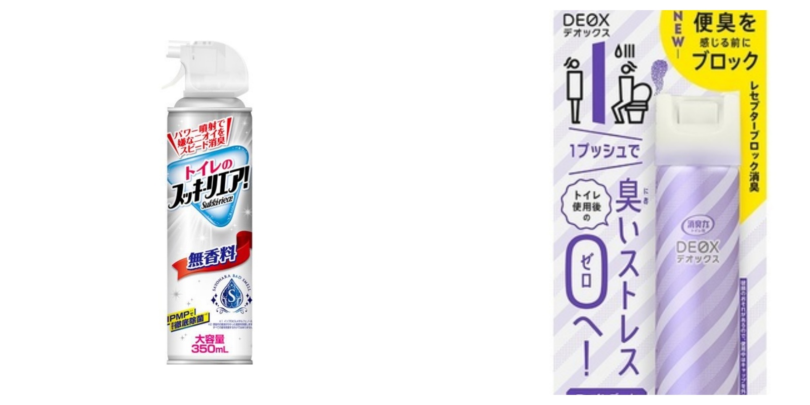 一般廁所芳香用品有置放型,也有噴霧型。而噴霧型的除了一般大瓶身,也小型方便攜帶的噴霧型,讓你外出到公共廁所也可以使用的。置放型則有插電式的,或者自動噴灑,又或者單純擺放在那邊不需噴灑也不用插電的。