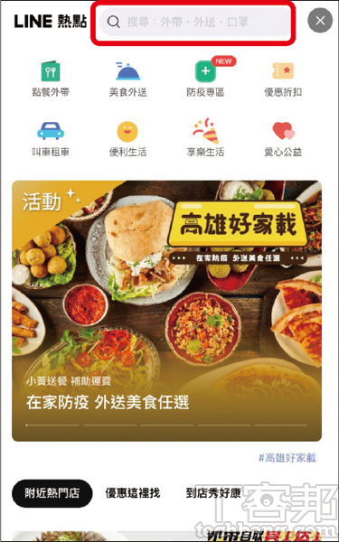 步驟2.在熱點的頁面下,點選搜尋框。