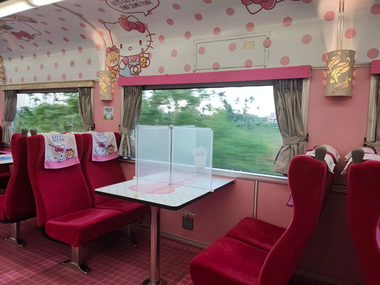 而公共空間的部分,原先提供茶點的車廂都換成提供雜誌和販售周邊,卡拉OK車廂則是只能點歌、聽歌,不能拿起麥克風唱(但妞妞們想跳跳舞是可以的喔),最後活動餐車車廂的部分也會進行人數控管,桌上也加裝了隔板,讓大家都可以來看風景、拍照打卡。