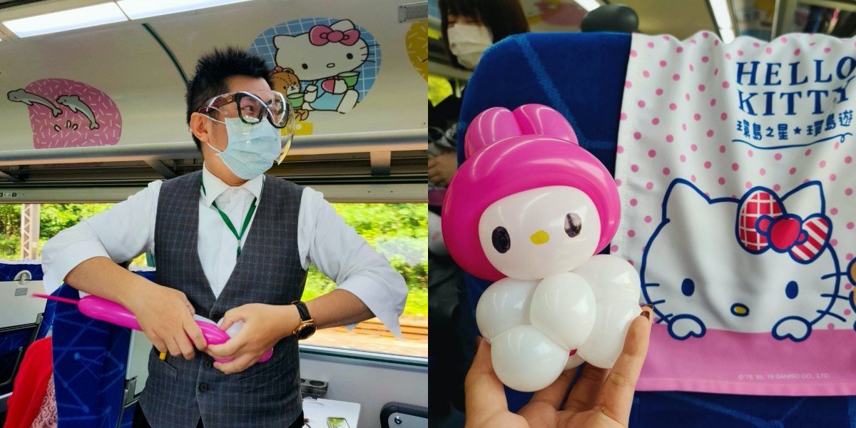 自從疫情警戒降級後,許多防疫旅遊都陸續推出啦!不過,為了配合指揮中心的政策,「環島之星Hello Kitty繽紛列車」的車上服務都做了許多的改變,首先為了保護大家的安全,每節車廂降載5成最多容納17人,且座位皆採梅花座,上車後工作人員也會提供內含酒精和手套的「防疫包」,讓大家可以消毒和防護喔。