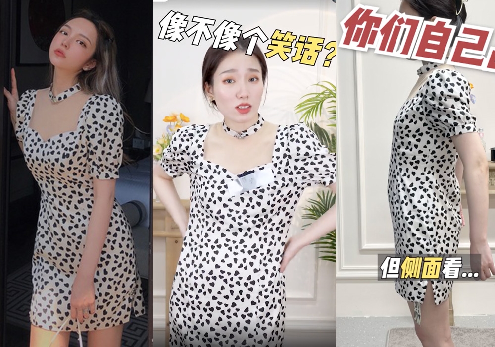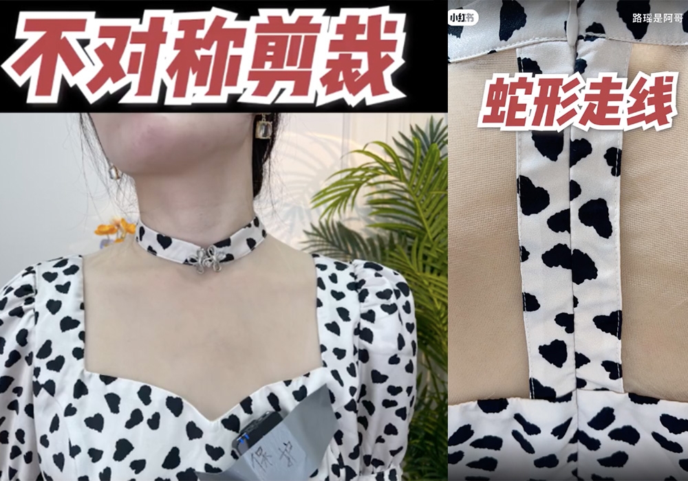 接下來是這件「貼身辣妹旗袍」與在社群媒體上獲得幾十萬的火爆款「改良式旗袍洋裝」也都是問題一大堆!