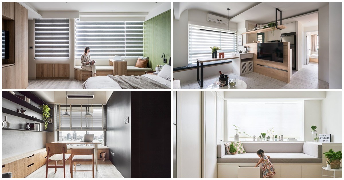 11 坪的日式無印風小宅,包含室內 9 坪及陽台 2 坪的有限空間,室內打破制式的實牆隔間,採取捲簾形式,來劃分客廳和房間的界線,讓空間擁有極高的使用彈性。窗台則巧妙融入木質臥榻,閱讀或彈吉他都輕鬆自在,同時具備工作檯面的功能,讓單身屋主可以創造多元的生活情境,待在哪都不無聊。