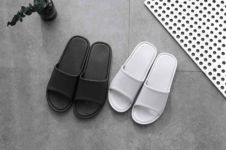外觀上有日式細紋簡約設計,看起來就像是一般的室內拖鞋,除了材質是由PVC製成之外,鞋底也有防滑紋理設計,是外觀與實用性兼具的浴室拖鞋。男女都可接受的素面樣式,有黑色與灰色兩款顏色選擇,作為情侶拖鞋也剛剛好。