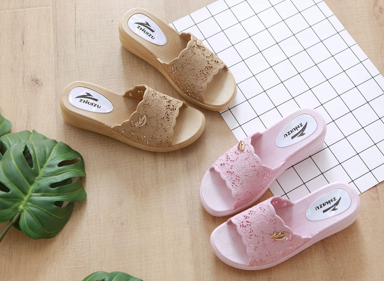 這一款的外觀樣式真的超不像浴室拖鞋的,沒有想到浴室拖鞋也能做得這麼美,厚底楔型鞋加上表面蕾絲花紋的外觀設計,想要穿出門也不是問題,鞋底特殊的防滑紋理能夠適用於室內地板或是浴室地磚,可以先入手再來考慮要做為室外拖鞋、室內拖鞋還是浴室拖鞋。