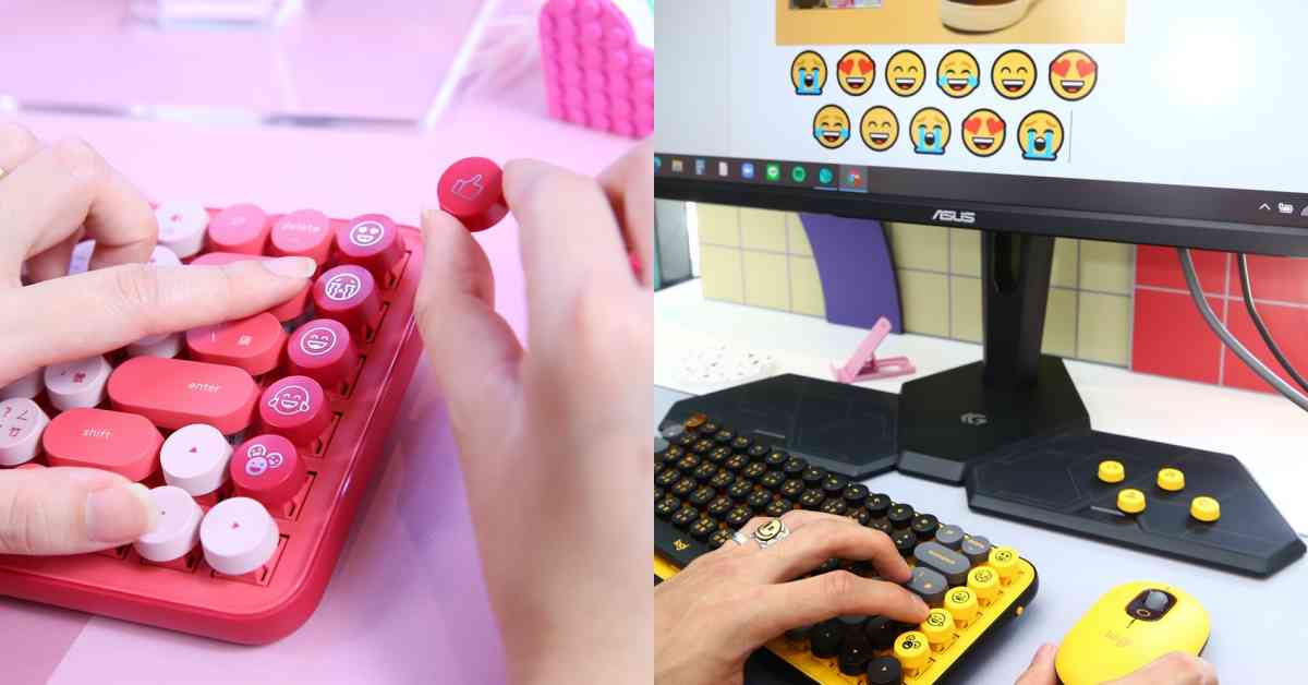最值得一敗的便是它「獨創客製化EMOJI功能」最右側配置4個EMOJI鍵帽(眼冒愛心😍、難過大哭😭、開心大笑😄、笑中帶淚😂),另附4款鍵帽(生火🔥、愛心❤️、比讚👍、祈禱/感謝🙏)。可依照心情自由替換,更可以在POP KEYS的F4到F12鍵上,同時安置8款鍵帽,讓所有心情都能一鍵隨時發送EMOJI,讓愛用EMOJI的人好心動!
