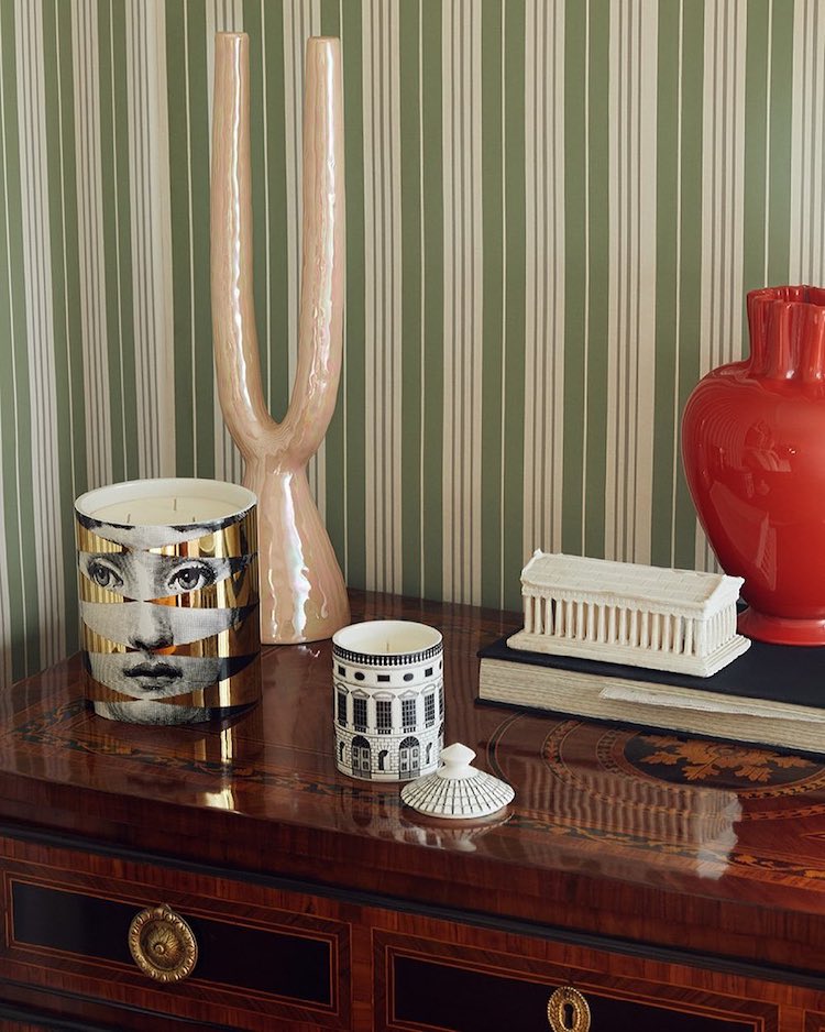 在 Piero Fornasetti 辭世後,便由兒子 Barnaba Fornasetti 接手創作,他將父親的作品攜手瓷器工匠,將絕美的畫變成不同的家飾及器皿,當中更以香氛蠟燭最受到歡迎!其原因除了精準的調香外,需費時約兩個月的時間才能製成的蠟燭的容器,更是成為許多人爭相搶購的收藏品,極具標誌性的女伶畫像、紅唇及羅馬建築,成了品牌最具識別度的圖樣。