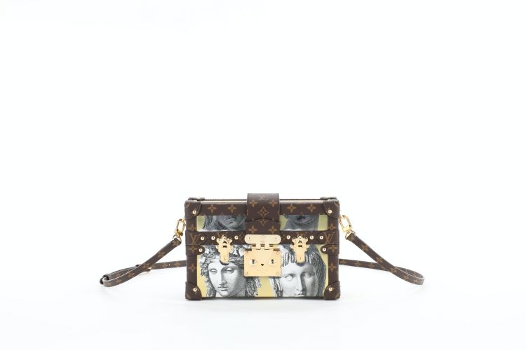 「Petite Malle」這款包憑藉著與硬殼行李箱同等的工藝,搭配上吸睛的外型,同時也是品牌創意總監 Nicolas Ghesquière 接手後的首個包款,眾多條件讓它站穩 IT Bag 的位子!這次在外觀上注入了 Fornasetti 的作品,讓這只包款不僅是搭配利器,同時也是一個絕佳的收藏品。(商品售價:NTD188,000)