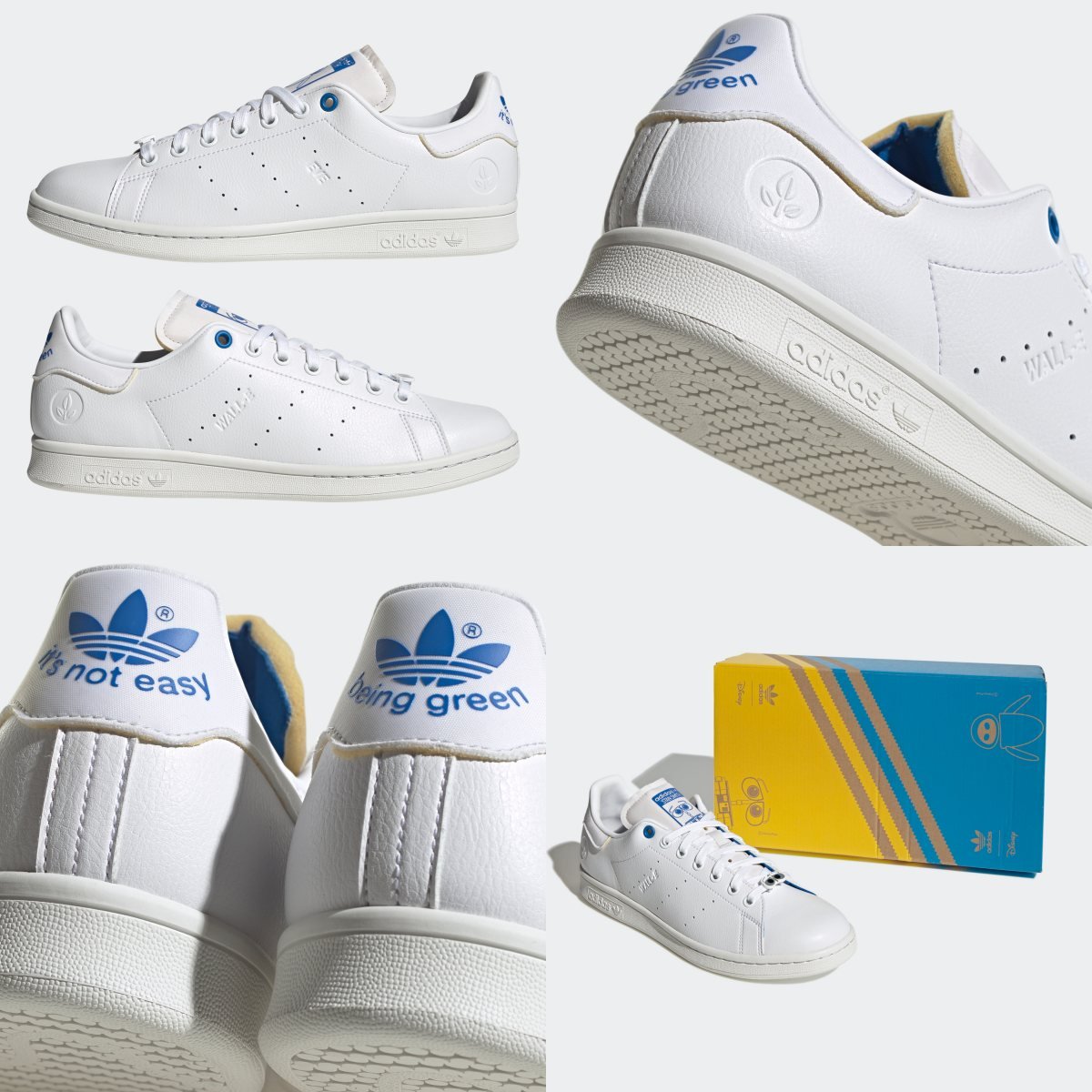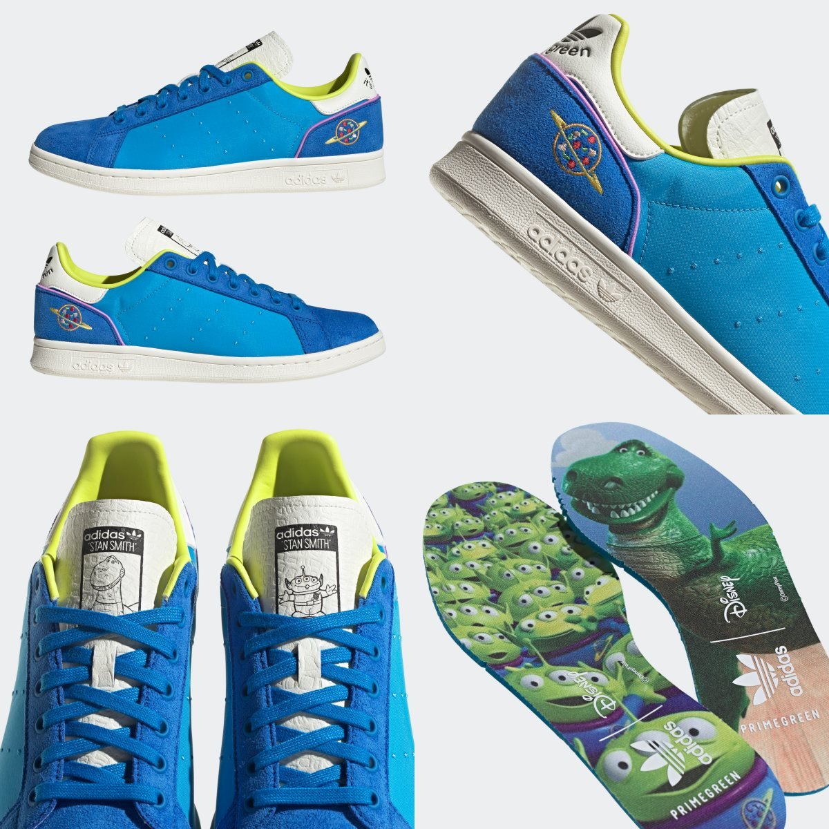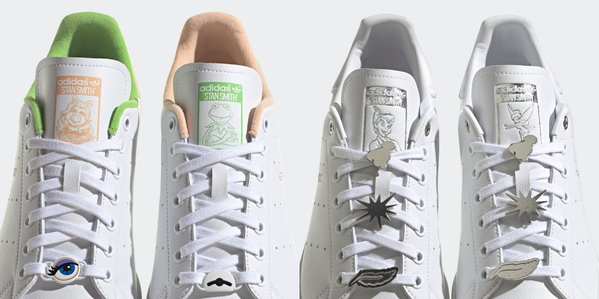 這次以環保材質打造的Stan Smith鞋款搭配上迪士尼、皮克斯與漫威的經典角色組合設計,其中包括《布偶歷險記》裡的科米蛙Kermit與佩姬Miss. Piggy、《怪獸電力公司》中的毛怪Sully與大眼仔Mike、《小飛俠》中的小飛俠彼德潘Peter Pan與奇妙仙子Tinker Bell、《玩具總動員》中的抱抱龍Rex與三眼怪Alien等,在鞋跟上也會印有「It's not easy being green」綠色標語。