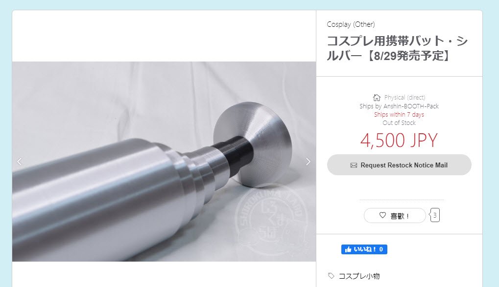 雖然說展開看起來跟實物的金屬棒球棍沒兩樣,但畢竟是Cos道具,基本上不具備打擊棒球的能力,而這款「Cosplay用可收納式棒球棍」,每隻日幣售價4,500円,預計8月29日開始發售。