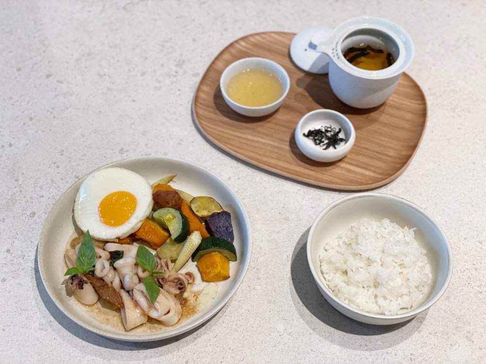 首度進駐商場的「自煮生活」是結合料理教室與餐廳的風味體驗空間,以友善土地、健康飲食為初衷,提供使用台灣在地食材、無人工添加物製成的的餐點,還有精品咖啡、酒精調飲,希望來到這裡的人能放慢腳步,開啟五感。