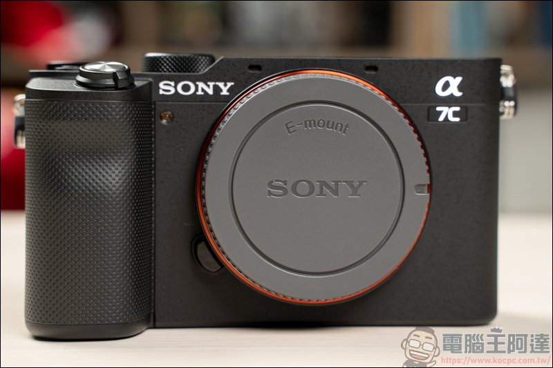 正面來看,Sony A7C 捨去了軍艦部,讓相機高度看起來較為短小: