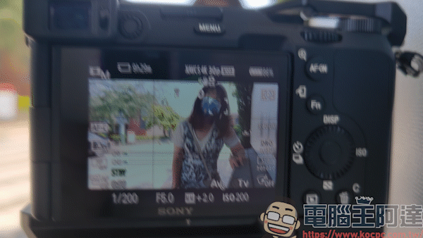 架上小腳架,就能使用 LCD 翻轉螢幕自拍自己,加上機身輕的關係,對手部的負擔會比較小一點: