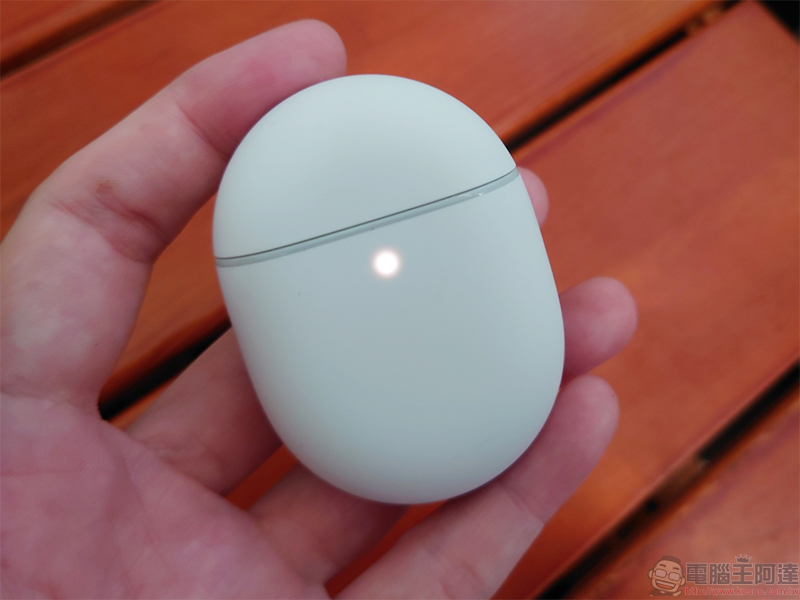 從充電收納盒到耳機本體皆採霧面消光白色,即便使用時間久了有刮痕也不容易看出來,而且也好清理,圓潤外型,隨手塞入口袋也不覺得難受,非常適合隨身攜帶。