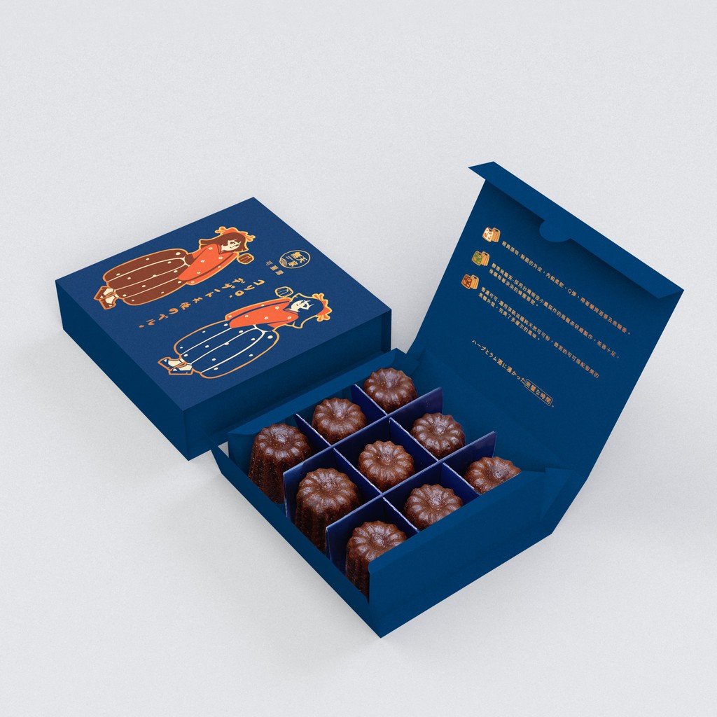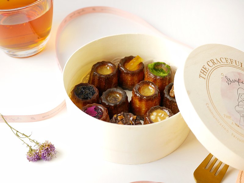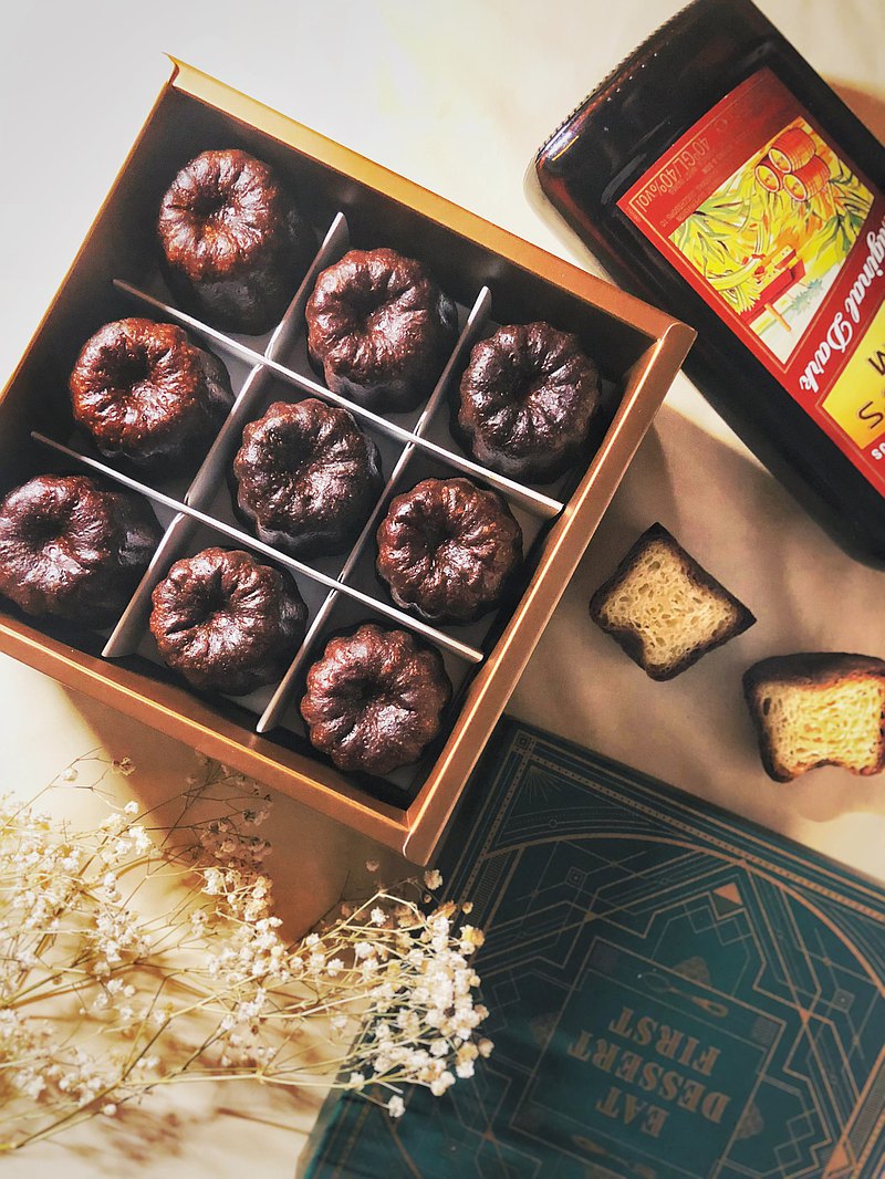這項源自於法國波爾多的特產,堅持傳統,堅持使用進口銅模烘烤,細心抹上透薄蜂蠟,烤箱維持均勻的火候,形成酥脆充滿焦糖香的外層,而內餡仍能保持濕潤柔軟、Q彈。微微酒香是蘭姆酒的滋味,如交響樂般多層的味覺饗宴。