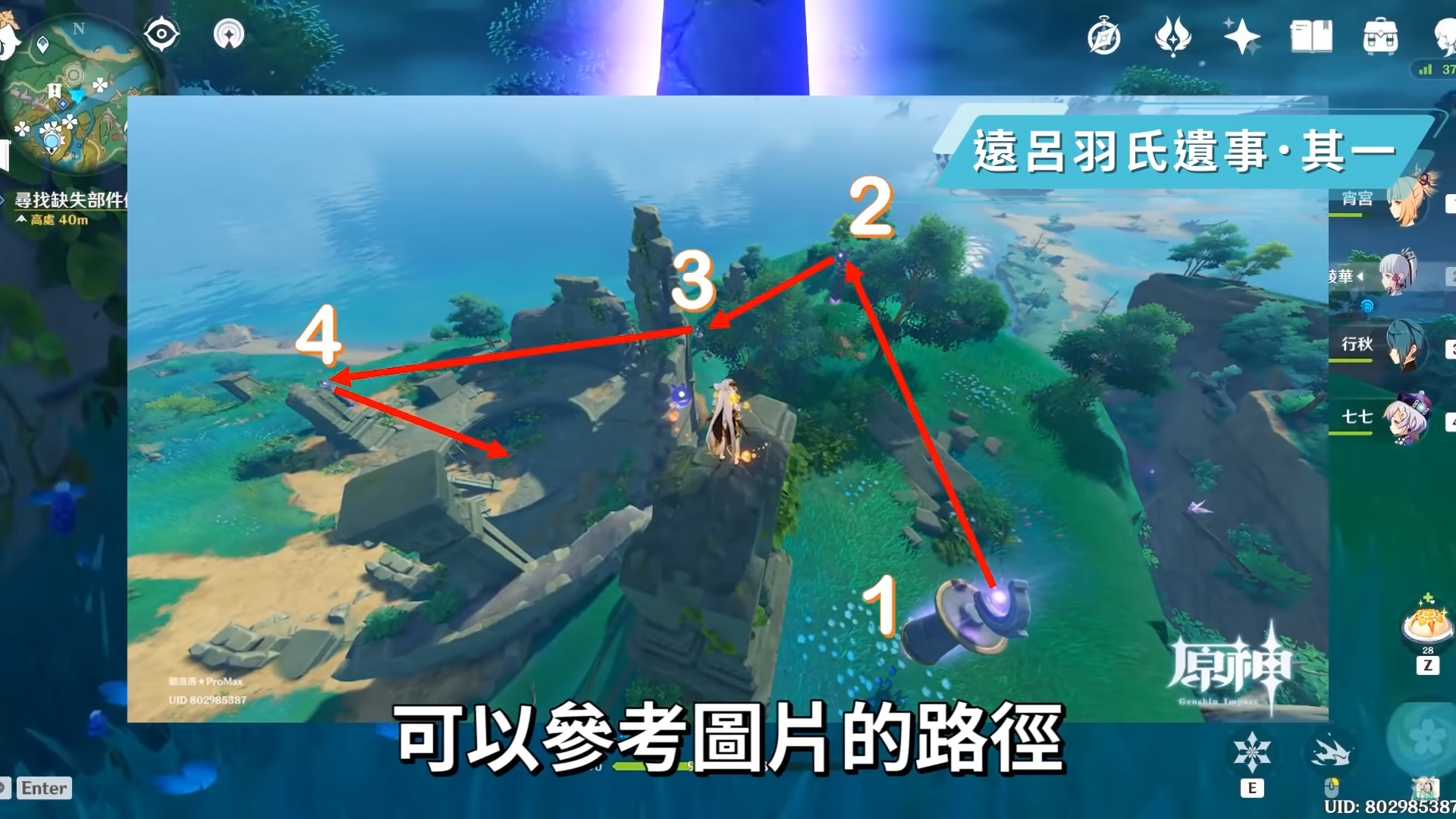 建議可以先找第一根柱子,也就是柱頂長得像C中間有一點的柱子,從這裡當基準,中間如果不小心掉到最底下可以召喚雷種子再飛上來,解開後就可以在水罩中心獲得鑲珠,再把兩樣鎮物交付回去就解完第二階段。