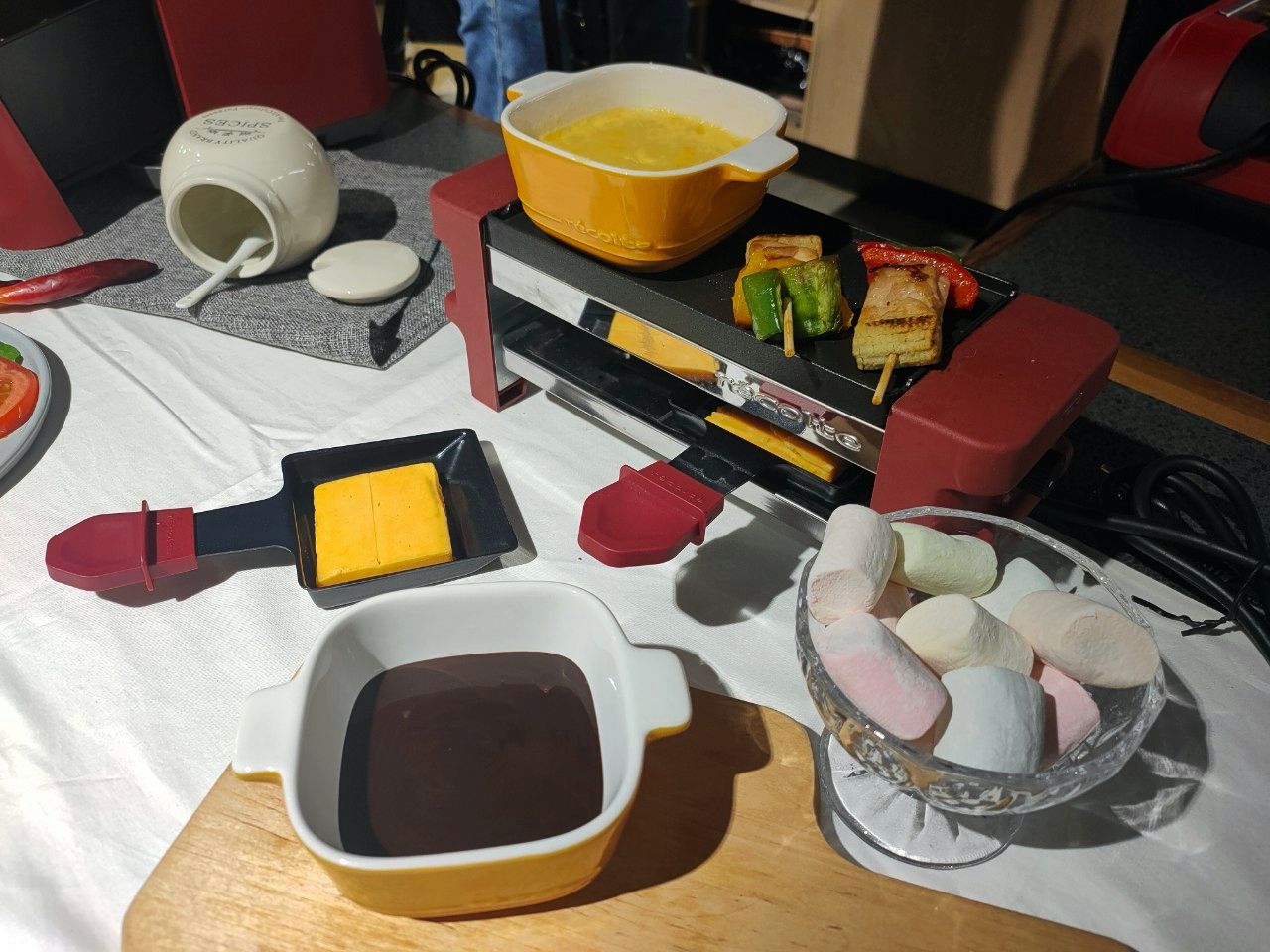 妞編輯最有興趣的就是這台「Melt 迷你煎烤盤」了~可以當雙層的烤串、烤肉機器,還能化身起司鍋、巧克力鍋的道具,烤完的肉串可以直接沾起司來吃,下層的鐵盤還能熱起司直接淋在牛排上!每一台都隨附專用陶瓷皿和迷你烤盤各兩個,滿足妞妞們的每種飲食需求。
