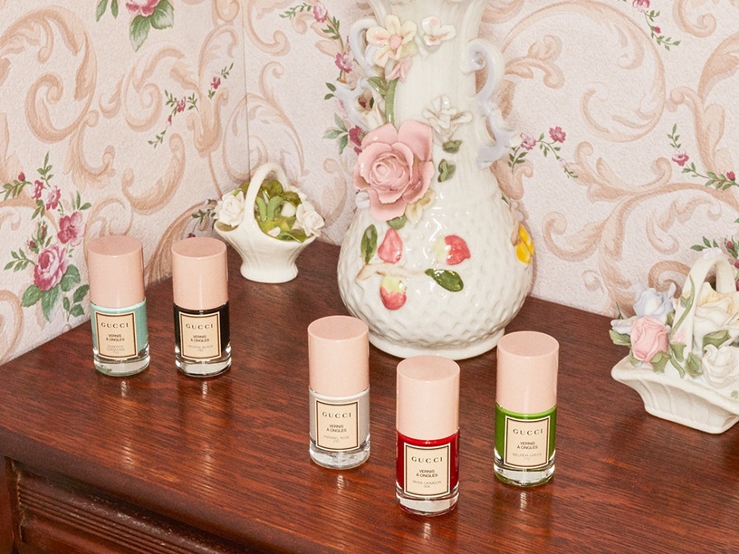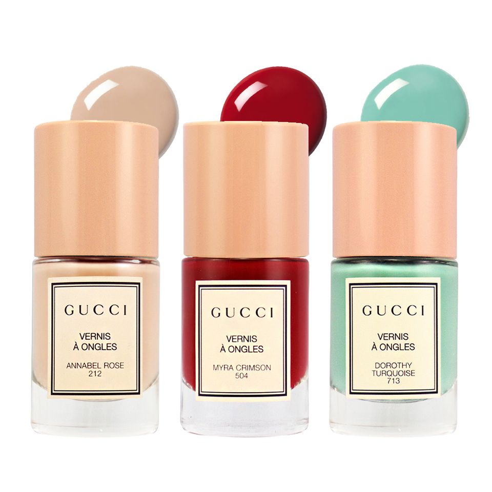 GUCCI設計總監精選時裝系列中5款經典色,推出可愛復古設計的指甲油,宛如對好萊塢經典電影及角色致敬,光滑圓柱玻璃瓶、淡粉色瓶蓋,瓶身還有特製GUCCI標籤,獨特的復古美學令人驚艷。