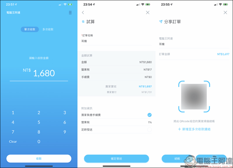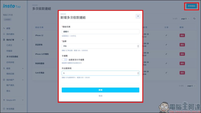 除了在手機能建立新的訂單,賣家也能透過賣家管理後台在網頁建立新的訂單,像是可選擇「待確認」、「多次收款」連結建立訂單並分享、收款。