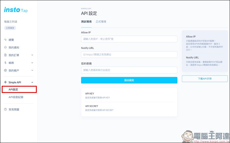 在賣家管理後台,也可設定 Smart API 進行 API 金流串接,能在自己網站上進行收款。