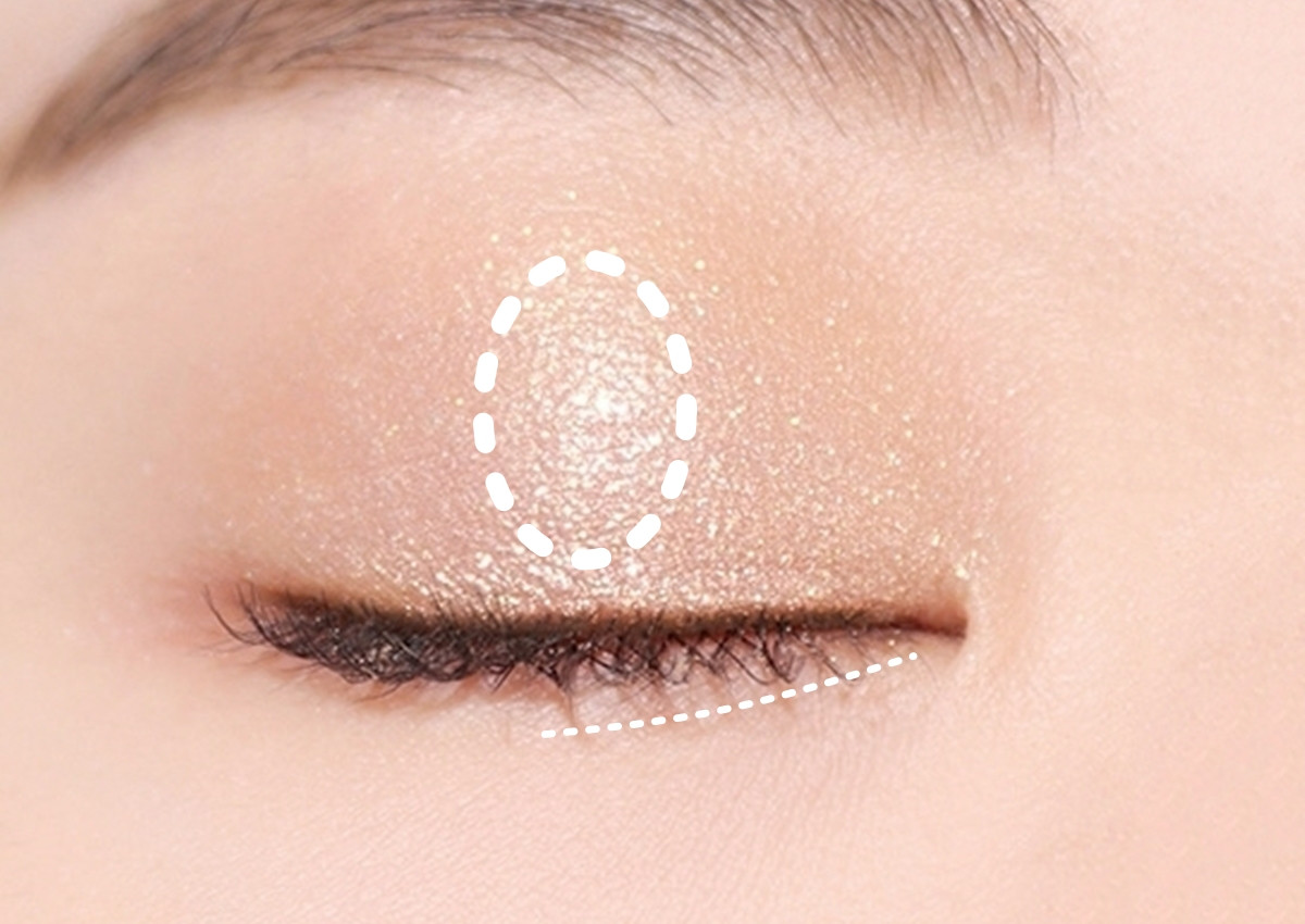 珠光建議選擇較細緻、上眼服貼的款式,以手指或是海棉棒上妝,以「點塗」方式上妝、不要來回塗抹,上在上眼皮中央、也就是閉眼感受眼球最突出的部位,下眼瞼的臥蠶中央也可以上一點珠光色,凸顯眼中輪廓、讓眼妝更加細緻。