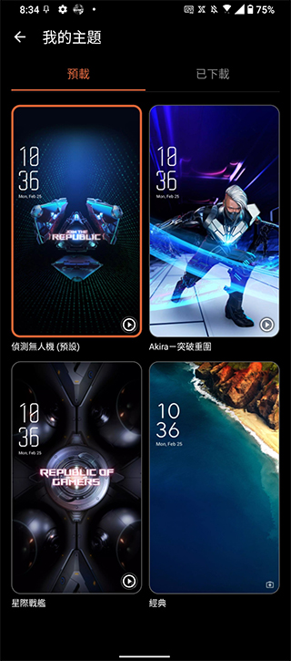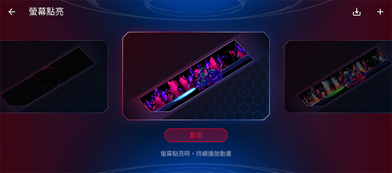 內建多組帥氣動態主題,包含 ROG 品牌專屬、虛擬人物 AKIRA 等,另外在主題商店中還有許多與遊戲合作打造的動態項目可供免費下載使用,整套包含待機畫面、主畫面,甚至彩色後置幻視螢幕都隨之擁有千變萬化的特殊動畫。