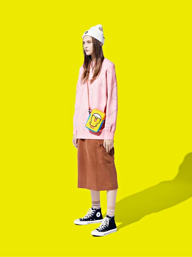 大家熟悉的莎莉、圍著領巾的男生小雞LOUIE 以及綁著雙馬尾的ELLY「3隻搗蛋鬼」合體登場,SALLY & FRIENDS MEETS :CHOCOOLATE初秋系列結合燕麥米、小雞黃、奶茶棕、霧面藍、草莓牛奶粉等溫暖色系,T恤、大學T上也有莎莉、LOUIE以及ELLY可愛加持,尤其還有一件「拼貼撞色大學T」,光配色就好治癒~