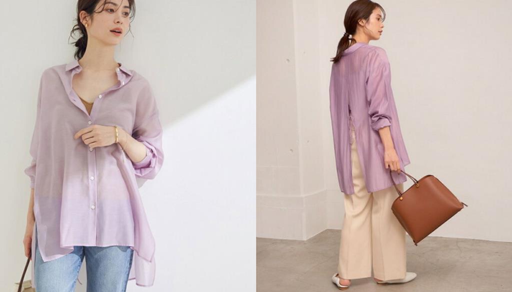 不只長款襯衫,今年流行的這種短版襯衫也很百變。它的最大特色是背後開叉及綁繩,你可以像石原及模特兒那樣直接穿,寬鬆版型帶來悠然感覺,也可以把繩圍著腰間繞一圈再綁蝴蝶結,就會變成較突顯身型的款式,隨著搭配不同裙子與褲子而變換,總之買一件放在衣櫥就對了。