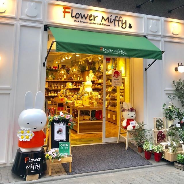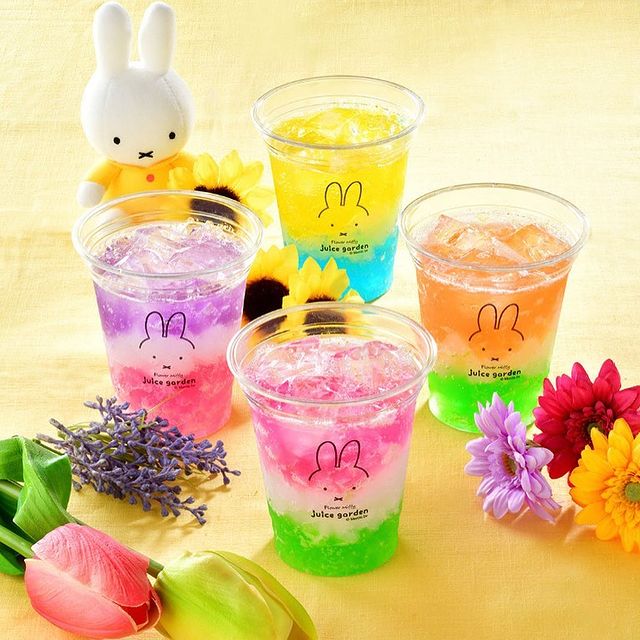 如果你不想花時間在餐廳中慢慢用餐,其實在淺草就有一家米飛兔主題飲料店「Flower Miffy juice garden」。這裡以花店為主題,裝飾著各雒花卉及植物的店面看起來很優雅。這裡可買到米飛兔的周邊商品,也可以外帶主題飲料與甜點,例如水果口味的蘇打飲料,咖啡等等,以印著米飛兔圖案的杯子盛載。