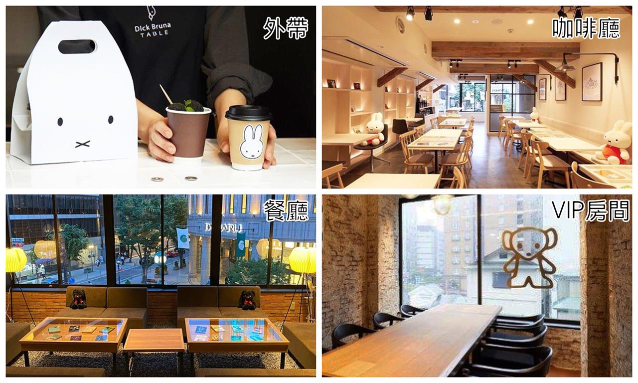 以荷蘭插畫家Dick Bruna(迪克·布魯納)的作品為主題,當然不乏其代表作米飛兔的繪本,這是一家面向成年人,充滿格調又有童趣的餐廳。1樓是輕食及飲料的外帶,2樓是周邊商店及咖啡廳區,3樓是餐廳,而4樓是派對或聚會用的VIP個室。