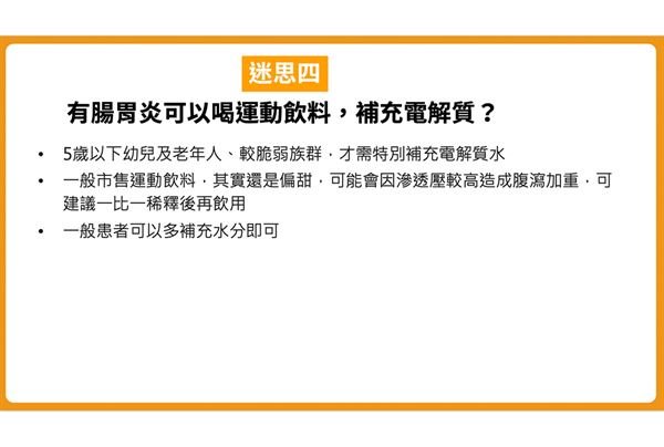 迷思四:有腸胃炎可以喝運動飲料,補充電解質?