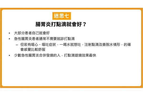 迷思七:腸胃炎打點滴就會好?