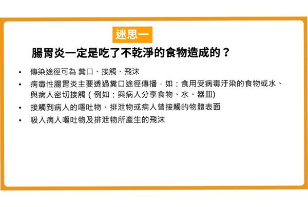 迷思一:腸胃炎一定是吃了不乾淨的食物造成的?