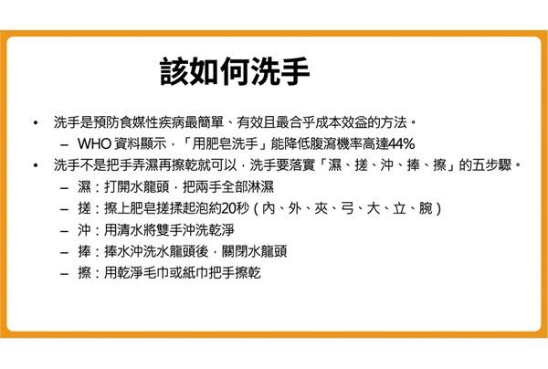 用肥皂洗手、公筷母匙、注意加熱食物的重要性