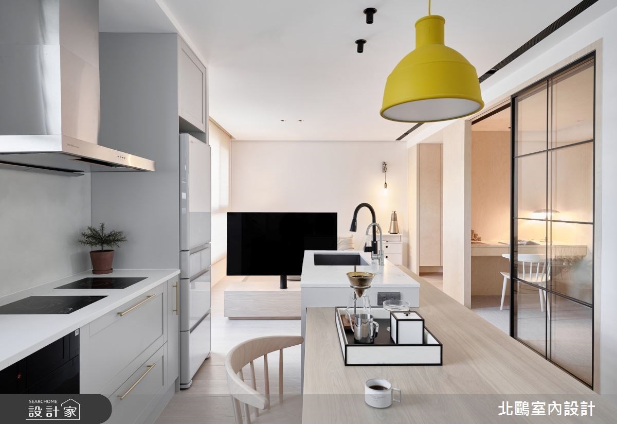 3. 電視牆換位設計,化身廚房、餐廳、衛浴屏風