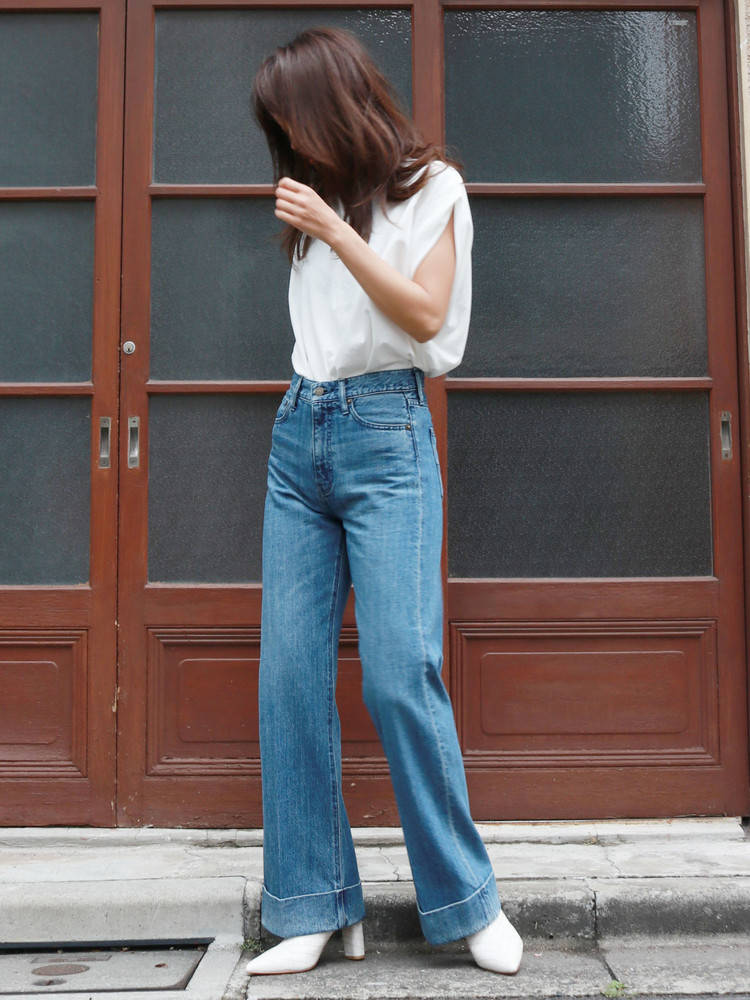 比較沒有大腿粗細度困擾,但卻總覺得自己腿不夠長的話,牛仔寬褲的長度與版型就是挑選時相當值得注意的地方!寬鬆度收在接近直筒的程度,利用落地的長度以及一點點喇叭褲的剪裁都能即刻拉長雙腿,若能再將上衣紮進褲子裡並搭配高跟鞋一同穿搭修長效果就更加倍。