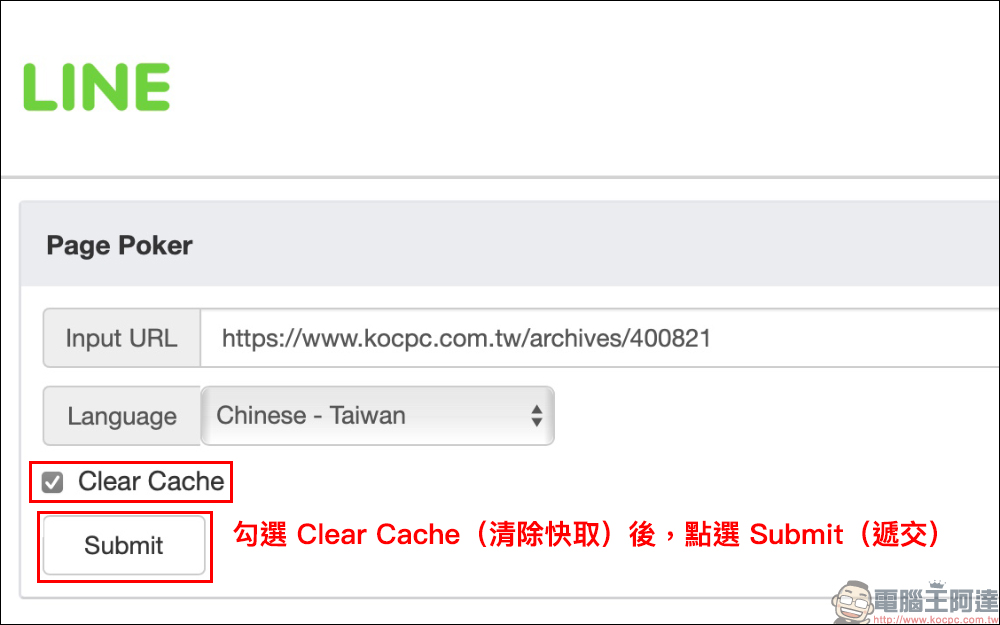 其實很多人不知道, LINE 也有提供類似 Facebook 的偵測工具功能「LINE Page Poker」,如果在更新頁面標題、縮圖或說明後想要手動要求 LINE 重新抓取網址的預覽資料,就能利用「LINE PagePoker」來解決,這對於經常使用 LINE 分享資訊的用戶也相當需要。