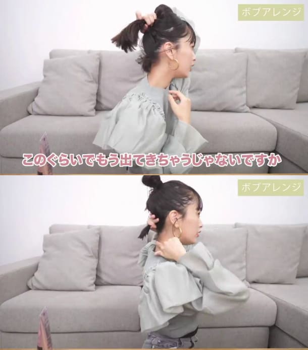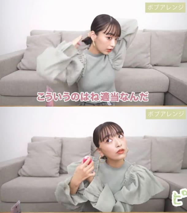 若你是屬於耳下至脖子間長度的短髮女孩,那麼在過渡期時也可以試試半丸子頭!在紮半丸子頭時有個訣竅,就是不能太整齊!近藤千尋分享,在紮出半丸子頭後,記得抓出臉頰兩旁、額頭邊界的髮絲,並於髮絲尾端抹上髮蠟使髮型濕潤有線條感,除了能避免秀髮毛躁的問題,也能讓髮型不過於隨便呦!