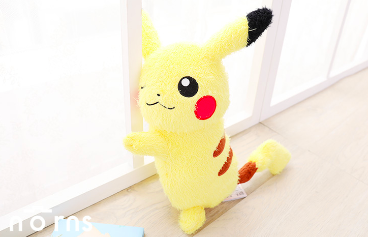 這個等身高的皮卡丘玩偶約40公分,頭頂還有一頂偵探帽子,好可愛!關節部份特別設計可以動作,像是耳朵、雙手、尾巴都可動。可以擺出思考的動作、舉手說嗨的動作等等。還有超大的眼珠子和臉頰兩側的腮紅,光看就覺得太欠抱一下了~
