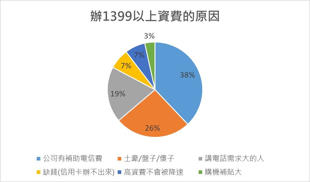 三星與Apple旗艦新機陸續登場,讓不少民眾掀起是否換機及門號升級的困惑。由於這些高價的旗艦新機都是主打搭配1399~2699資費,綁約期限最高達48期,日前有問網友在PTT八卦板上詢問「為什麼還是有人會選擇月繳1399呢?」引發眾多網友提出自己的看法。 現在有多少人辦1399資費呢? 為何買手機還要辦1399資費呢 ? 以下解析PTT網友的看法: 1.台灣手機銷售通路結構與1399資費比重: 台灣行動門號普及率極高,目前門號用戶數已經超過3000萬,平均每位國民擁有1.3個門號。究其原因,與台灣電信競爭激烈,在辦門號享高額補貼助長下,促成台灣電信產業的蓬勃發展。過去受惠於電信業者一機一卡門號高補貼措施下,電信通路成了台灣手機銷售的霸主。為了享有上網吃到飽以及高額補貼優惠,在2017年以前,申辦1399以上資費是相當正常的,電信三雄1399資費占比在經銷攜碼通路一度超過30%~40%。不過,受到電信三雄在2018年5月推出499上網吃到飽方案(俗稱「499之亂」),掀起低價上網吃到飽單門號風潮,電信通路銷售手機佔比首次跌破六成。2020年1月台灣5G競標創1188.77億元天價,各大電信業者不約而同「調降電信購機補貼」並「嚴格控制門號開通品質」,電信通路銷售手機比重持續創新低,以單購手機為主虛擬通路佔比迅速提升,突破20%以上。 在低價上網吃到飽風行下,電信業者也鬆綁一機一卡策略,由台灣大哥大帶頭推起辦門號不用搭行動裝置方案(詳見"電信自由化電信業者機卡分搭購策略"),也漸受歡迎。影響所致,1399以上資費的開通佔比持續下滑,目前經銷通路的占比已經下滑至個位數,版主預估目前電信三雄1399以上資費的VIP用戶可能只剩10~15%左右,變成稀有族群! 2.為何買手機還要辦1399資費呢 ? 有位網友日前在PTT八卦板上詢問,各大電信業者推出0元手機專案,每個月要繳1399綁24個月,算下來也要花33600元,但買空機再配月繳499都比較划算,「為什麼還是有人會選擇月繳1399呢?」貼文一出,網友熱烈留言,版主整理網友留言資料,可以大略分成六大原因如下: A.公司補助: 由於仍有不少公司會補貼高管或是業務人員電話費,對他們而言,花公司補貼拿高價手機是何樂不為的事,居買手機辦1399資費原因的首位(38%)。 B.土豪/盤子/傻子: 許多網友認為現在買手機還辦1399資費的人,都是有錢人/盤子/傻子,佔比為26%。不過,這個原因有不少成分是屬於網友酸葡萄心理居多。真正有錢人通常是精打細算的人,若非是公司補助,不會傻傻去辦1399以上資費。 C.業務需求: 雖然不少人改用免錢的通訊軟體通話,但仍有為數不少的作生意的長者或是接觸對象不確定的業務人員,因有大量打行動電話或市話需求的人,選擇網內互打免費且網外/市話免費分鐘數多的高資費是不得不的選擇。業務需求佔19%,居第三名。 亞太電信與台灣之星的打網外與市話更便宜,為何不選擇呢? 對於商務人士,漏接電話損失的商機遠大於每個月的電話費,所以只會使用電信三雄的門號為主電話,這也是1399以上高資費用戶大都集中在電信三雄的原因。 D.缺錢,把辦門號當分期: 辦1399高資費的用戶,除了商務人士外,也有不少是口袋羞澀的用戶。目前電信三雄都有推出高階旗艦機綁1399 48期$0方案,就是要滿足一些”非新款iPhone”不用,把高月租門號當作信用卡分期付款概念,提前享受使用熱門旗艦新機的小確幸,這個原因佔7%,居第四名。 貧困家庭幹嘛買高階手機呢?貧困人士買不起洋房及好車,但省吃儉用買台高階手機給自己用也算是貧困人家的小確幸。人窮志不窮,只要不偷不搶不騙,人活著給自己”幾根希望火柴”並無妨。 另外,辦(高資費)換現金,一直以來也是缺錢人士與地下當鋪進行的不法勾當。雖然各大電信業者推祭出不少罰則與風控機制來杜絕這類辦門號換現金的歪風,但缺錢如野火燒不盡,也有少數1399資費用戶是屬於辦門號換現金的漏網之魚。 E.追求網路品質及較好的貴賓待遇: 使用高資費的用戶大都是各大電信VIP用戶。通常電信業者會給予較高的貴賓待遇。傳言VIP用戶不會被降速,網路品質比較好…等等,版主向來不是VIP客戶所以無法斷言,但VIP用戶可以想提前續約、續約的補貼比較高…優惠是確實的,但划不划算見仁見智。 F.購機補貼高: 電信業者的購機補貼來自於預期用戶綁約期間所繳付的電話費總額,月租費越高補貼率越高。若以通訊名店的攜碼補貼款來看,4G 699購機方案的補貼率步到30%,1399(24)期卻高達50%以上。兩者購機方案的月租差距若扣掉購機補貼款,差距不是$700,而是300多元,但後者可以享5G不限速上網吃到飽及較高的免費通話分鐘數,各有所訴求之處。 只要能負擔的電信資費,就是好資費。 5G開台以後,4G網路品質持續下滑,想要享高速網路品質及高購機補貼,只能選999或是1399以上;若是能夠忍受目前4G網路品質,就可以選擇繼續爽爽用囉!