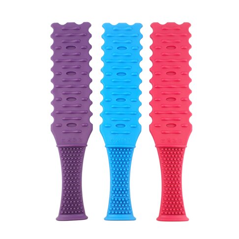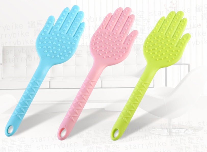 鐵馬星空的拍痧板,是設計成手掌的形狀。有藍、粉、綠三色可以選擇,顏色很清新!特別的凸點設計,能夠用來活絡按摩。這款是矽膠的材質,接觸皮膚柔軟又舒適,輕鬆拍打,放鬆身心靈。