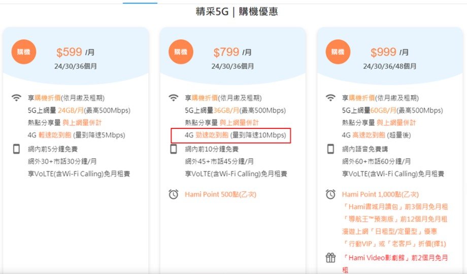 無獨有偶,中華電信也在9月17日在官網悄悄出現 5G 799 超量4G勁速吃到飽(量到降速10Mbps),目前三雄只剩台灣大哥大還沒跟進。