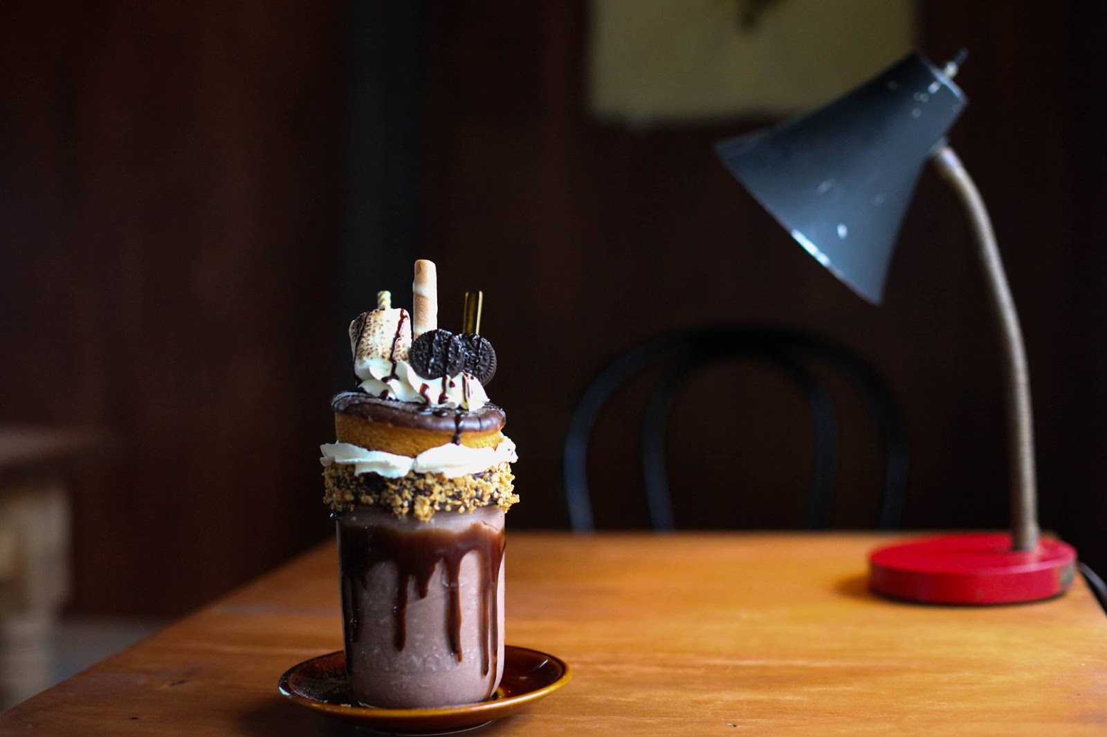 另外這一杯看起來超壯觀的『冰淇淋奶昔-巧克巧克』也是人氣必點之一。小和山谷的奶昔是以自家製作的冰淇淋現打而成,就連焦糖及淋醬也都是手工自製,處處看得見用心小細節。