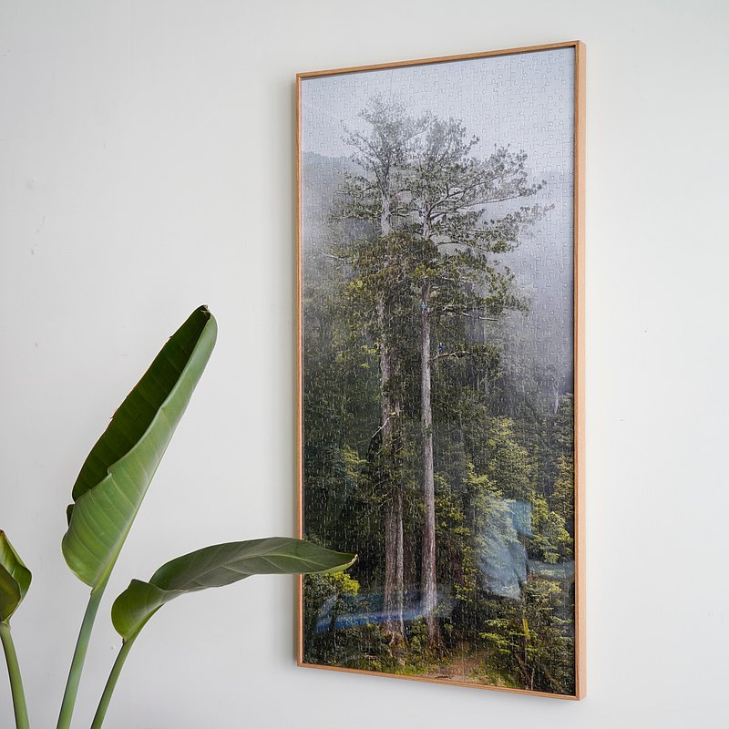 而且拼圖本身還有鋁框可以選購,讓你可以把一整張拼圖的成品,裱框在鋁框中,會有一種把整棵台灣杉擺在家中的感覺,為居家環境增添幾分清新的森林感。