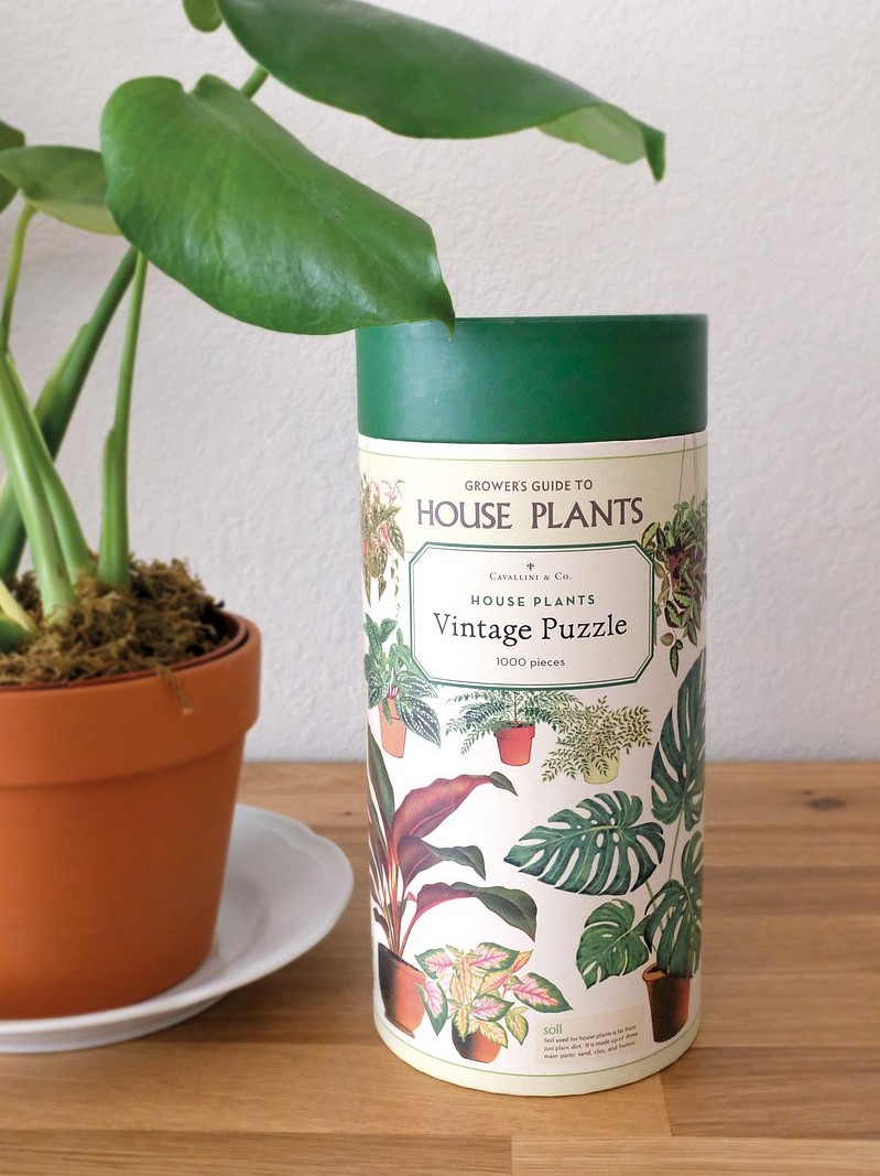美國紙製品牌 Cavallini & Co. 的拼圖可以說是拼圖界中的極品!像這款室內植物拼圖就非常精緻,拼圖的外盒採用有厚度的紙筒來包裝,這樣在拼圖完成之後,紙筒還可以當成筆筒拿來收納利用。