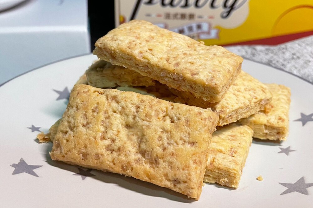 這款酥餅乍看之下有點像方塊酥,其實它是有著香濃鹹蛋黃風味的法式酥餅哦!餅皮的口感吃起來很有層次感,而且還強調不添加香料跟色素,享受美味之餘也能吃得更安心。