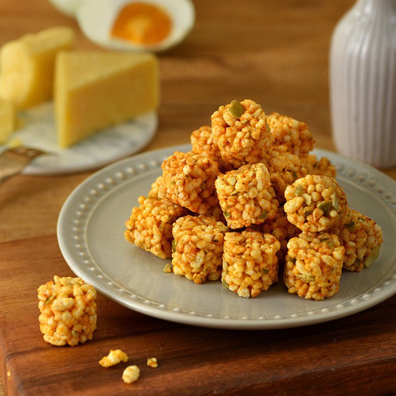 鹹蛋黃跟起司的組合,聽起來好罪惡可是又好想吃~這款脆米果不只可以吃到鹹蛋黃的鹹香美味,還能同時品嚐到香濃的起司風味,而且是用低溫烘焙去製作的,吃起來其實很輕爽,不會有負擔。
