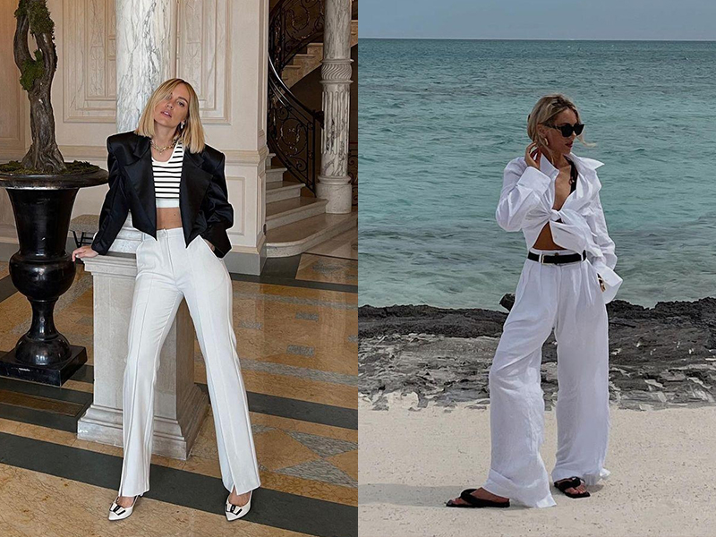 修飾身形同時又有型的落地寬褲根本是最棒的發明!自從落地寬褲在全球大為流行後,早已忘了上次穿著緊身牛仔褲是什麼時候。夏天時白色或淺色系的寬褲充滿度假風味,搭配白襯衫與比基尼,好想立刻奔去海邊;而到了秋冬,白色寬褲還是能持續做搭配,將夏季感的上半身單品替換掉,換成皮外套、西裝外套、甚至是風衣外套,取代輕鬆舒適,化身幹練有型的女強人。