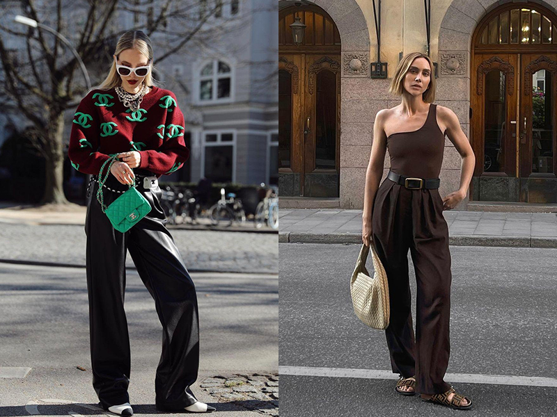深色的寬褲變化性又更多,搭配今年夏天非常流行的斜肩上衣和勃肯拖鞋,在知性中展現隨性的態度。天氣稍微轉涼的時候,簡單套上一件針織上衣,運用亮色單品點綴一身黑,讓沈重的氣息瞬間活潑起來。