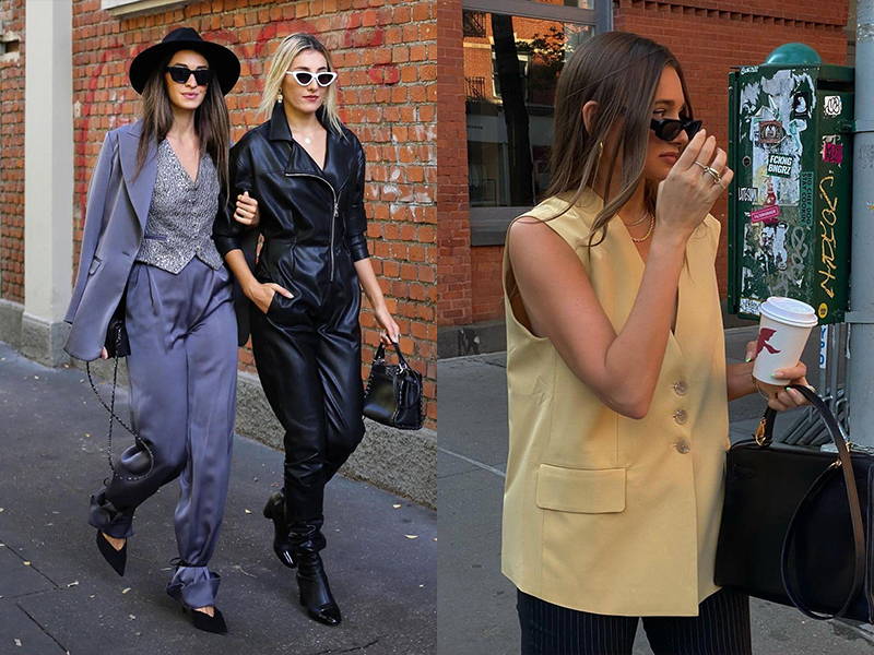 原本是男性正裝中才會看到的西裝背心,今年在女裝中也是大流行,無論是單穿還是內搭T-Shirt,職場正裝、見總統的微正裝還是隨便穿都很有重點;不過才剛穿一季的西裝背心,進入冬天就要打入冷宮未免有點太可惜了。這種西裝式的背心並非夏天的專利,換季時外面套一件西裝外套,和西裝寬褲,就像男性正裝的穿法,整體看起來就非常俐落。