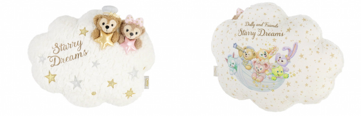 還有軟綿綿的Starry Dreams雲朵抱枕,正面是立體的達菲與雪莉玫抱著星星 ; 背面則是所有成員們的主題圖樣,真的太療癒啦!